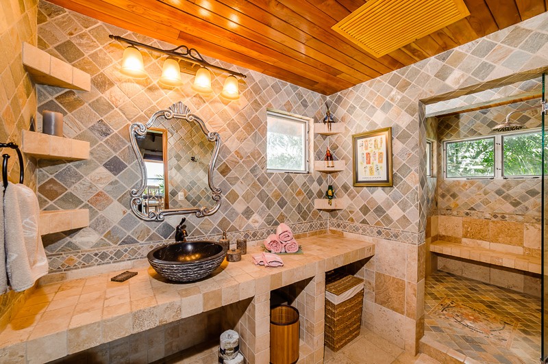 The third floor features three bedrooms and three full private baths. Two of the bedrooms open out to a full floor patio with stunning ocean views. The third bedroom has mountain views with its own bath. Fine details, comfort and beauty abound in this one of a kind ocean front home.