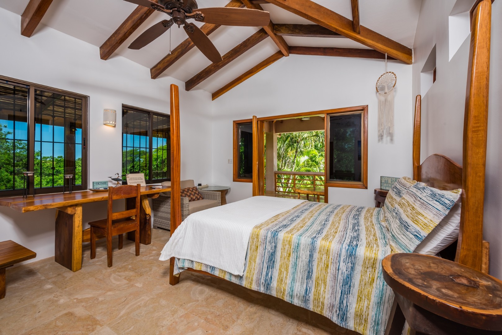 Enjoy some much deserved hammock time on the second floor porch, complete with ocean views, balmy breezes, an array of tropical birds, and if you’re lucky even a monkey or two within sight.