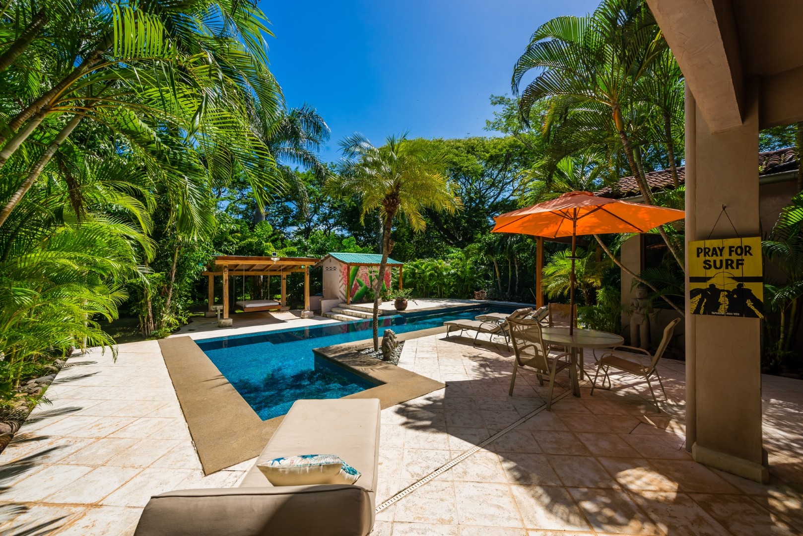 Casa Infinity is a great place to use as a home base for your vacation. Just steps to the world class surf break Playa Negra, a great swimming beach aptly named, “Sandy Beach” and many great local restaurants. Casa Infinity features secured privacy with no immediate neighbors.